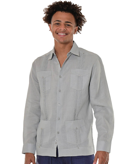 Men Linen Classic Guayabera Shirt Long Sleeve (Gray)